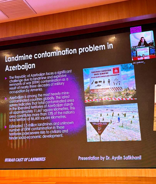 Humanitar minatəmizləmənin Azərbaycan dövlətinin əsas prioritet vəzifələri sırasında olduğu, Azərbaycan Minatəmizləmə Agentliyinin (ANAMA) bu istiqamətdə mühüm fəaliyyət həyata keçirdiyi, Ermənistanın düzgün mina xəritələrini təqdim etməməsinin yaratmış olduğu çətinliklər seminar iştirakçılarının diqqətinə çatdırılıb. Bildirilib ki, Azərbaycan ombudsmanı mina qurbanlarının hüquqlarının müdafiəsi, onların sosial reinteqrasiyası və tibbi-psixoloji dəstəklə təmin olunması istiqamətində ardıcıl və sistemli fəaliyyət həyata keçirir, beynəlxalq təşkilatlara ünvanlanan hesabatlar, bəyanatlar və xüsusi məruzələr vasitəsilə Ermənistanın mina terroru nəticəsində baş verən insan hüquqları pozuntuları diqqətə çatdırılır.