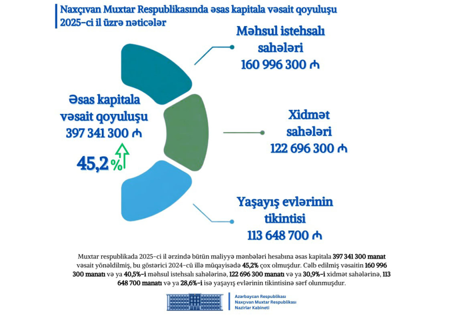 Naxçıvanda ötən il əsas kapitala vəsait qoyuluşu 45 faizdən çox artıb