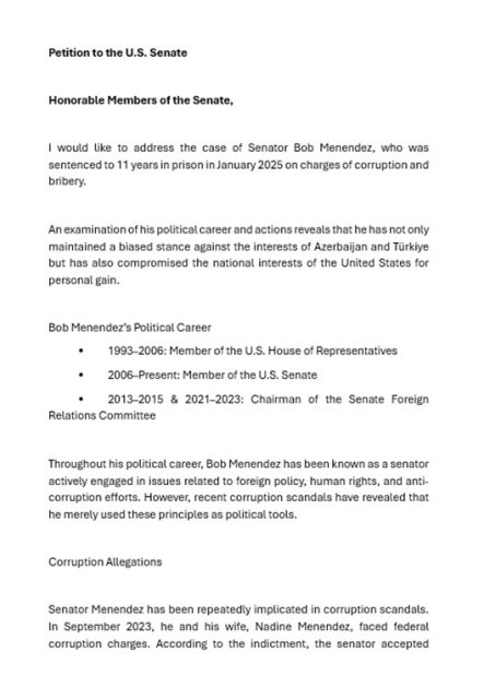 Almaniyada yaşayan soydaşımız ABŞ Senatına müraciət edib