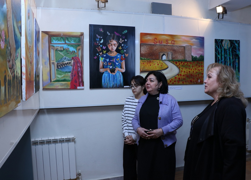 Şuşaya həsr edilən sərgidə tələbələrin 60-dan çox əl işi nümayiş olunub