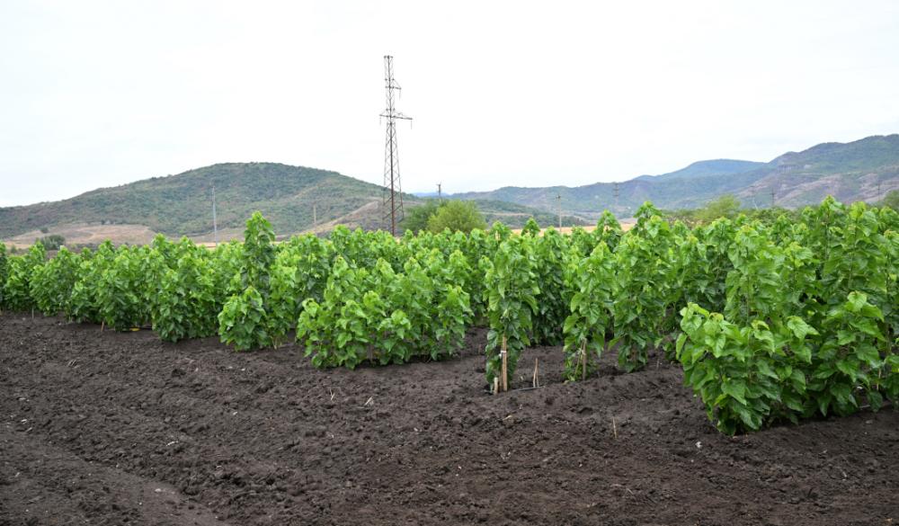 Bildirildi ki, burada Çin Xalq Respublikasından idxal olunmuş 130 min ting əkilib. Tut bağında damcılı suvarma sistemi yaradılıb.