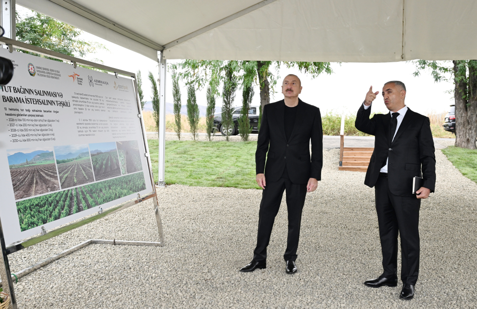 Azərbaycan Respublikasının Prezidenti İlham Əliyev sentyabrın 15-də Xocalı rayonunun Daşbulaq kəndində 13 hektar sahədə salınmış tut bağında olub.