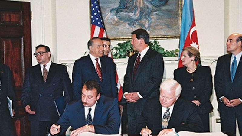 31 il əvvəl, 1994-cü il sentyabrın 20-də dünyanın 8 ölkəsinin 13 ən məşhur neft şirkəti ilə “Əsrin müqaviləsi”ni imzalamaqla respublikamızın iqtisadi-siyasi həyatında yeni dövrün başlanğıcını qoydu. Dünyanın ən nəhəng enerji şirkətləri ilə imzalanmış bu sazişin icrası sayəsində “Azəri-Çıraq-Günəşli” yataqlarından hasil olunan neft dünya bazarlarına nəql olunmaqla ölkəmizin iqtisadi inkişafında həlledici rol oynadı, Azərbaycanı neft ixracatçıları ailəsinin layiqli üzvünə çevirdi.