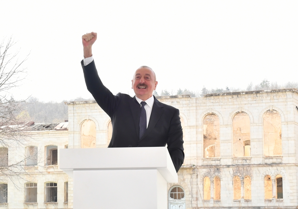 Урегулирование карабахского конфликта являлось для меня, как Президента, главной задачей. Со дня избрания на этот пост по сей день решение этого вопросы и развитие постконфликтного периода в пользу Азербайджана – главная задача для меня, и мобилизованы все силы. Все мы – и граждане Азербайджана, проживающие в Азербайджане, и азербайджанцы мира били в одну точку, стремились к достижению одной цели. Я говорил, что каждый из нас ежедневно должен приближать этот священный день - своим трудом, работой, каждый на своем месте, и не было более важной, высшей задачи, чем освобождение наших земель от оккупации. Именно поэтому высокими темпами велось армейское строительство, поэтому Азербайджан стал обладать современной армией, поэтому молодое поколение воспитывалось в духе патриотизма, ненависти к врагу, преданности к Родине, поэтому проводились экономические реформы. Во главе всей нашей работы, проводимой политики, предпринимаемых шагов стояла идея приблизить этот священный день, увидеть этот день. Мы добились этого собственными силами. В противовес продолжавшимся 30 лет бессмысленным переговорам азербайджанский народ продемонстрировал свою силу, восстановил справедливость, международное право и доказал всему миру, что мы – великий народ, что никогда этот народ, азербайджанский народ не собирался мириться с оккупацией.