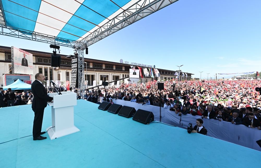 -С этими чувствами хочу еще раз пожелать, чтобы аэропорт Ризе-Артвин принес пользу нашим городам и региону. Хочу выразить перед вами особую признательность коллективу Министерства транспорта во главе с министром, архитекторам, инженерам и работникам, подрядным фирмам, принимавшим участие в строительстве этого аэропорта. Еще раз благодарю моего уважаемого брата Алиева, разделившего с нами радость открытия аэропорта. Приветствую вас с уважением и почтением. Спасибо.