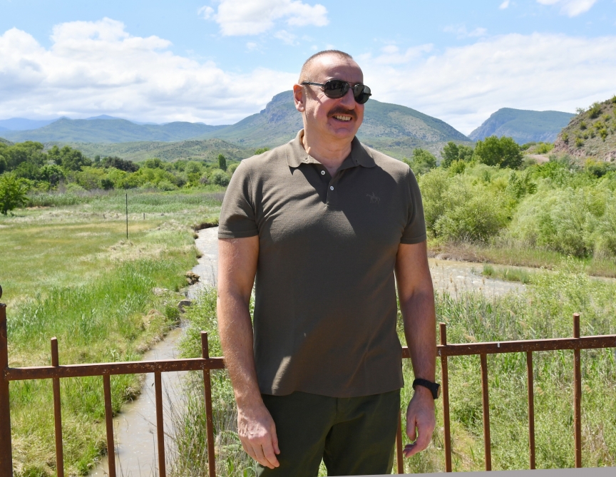 Президент Ильхам Алиев и первая леди Мехрибан Алиева полюбовались панорамой реки Охчучай