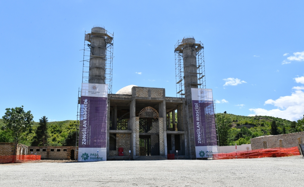 Старт работам по восстановлению Зангиланской мечети был дан 26 апреля прошлого года с участием главы государства Ильхама Алиева, первой леди Мехрибан Алиевой и их дочери Лейлы Алиевой, восстановительные работы ведутся непрерывно.