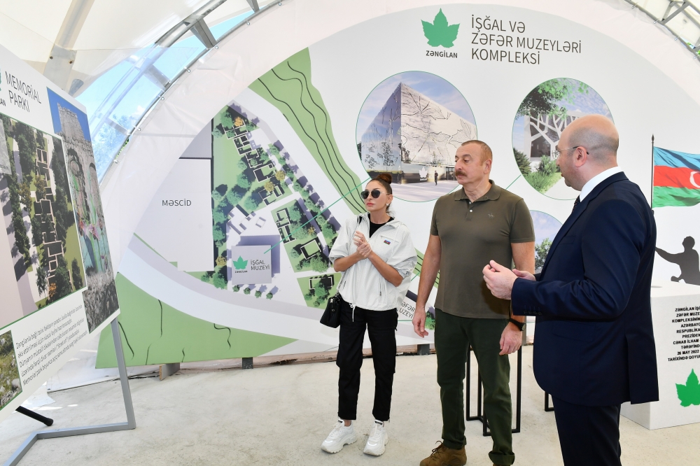 Затем Президенту Ильхаму Алиеву и первой леди Мехрибан Алиевой был представлен генеральный план города Зангилан.