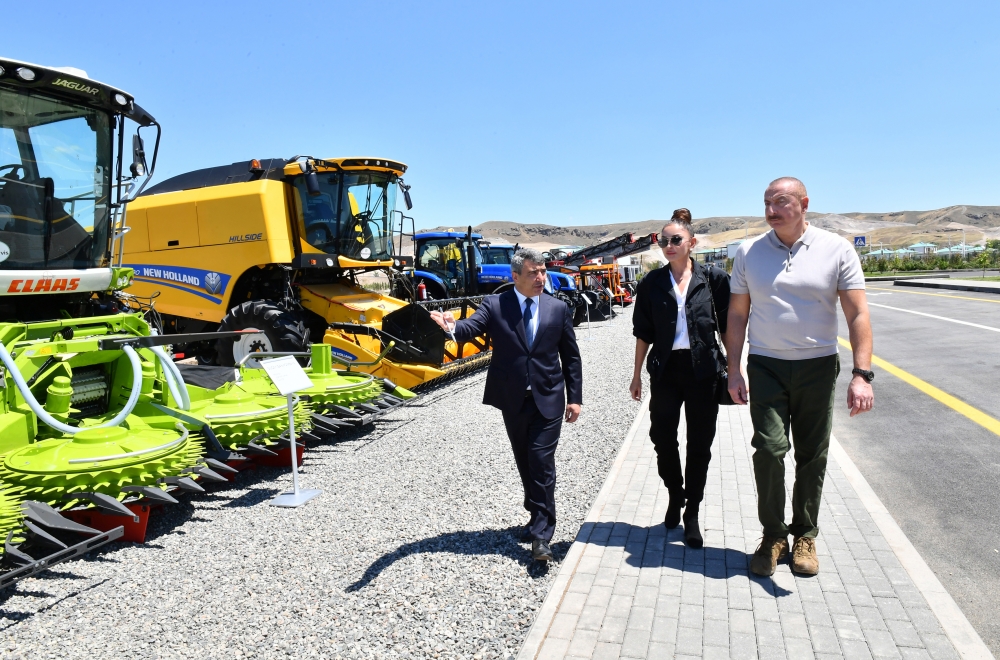 После встречи Президент Ильхам Алиев и первая леди Мехрибан Алиева ознакомились с техникой «умного сельского хозяйства», представленного ОАО «Агросервис».