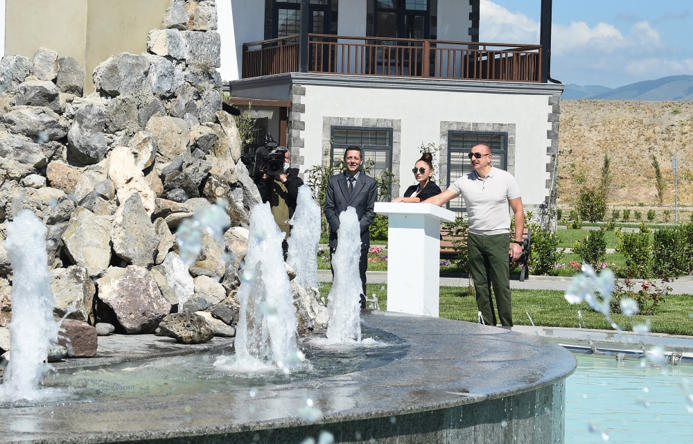 Президент Ильхам Алиев и первая леди Мехрибан Алиева ввели фонтан в действие.