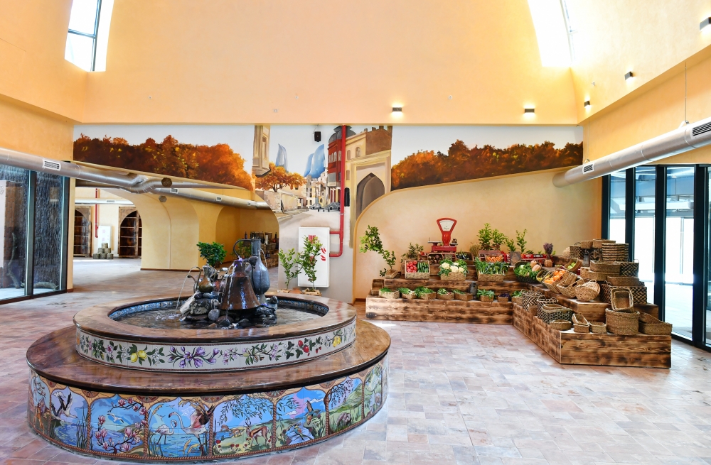 Купола, являющиеся главными атрибутами комплекса, представлены в дизайне по назначению различных объектов общественного питания. Для обеспечения комфорта покупателей, которые будут посещать базар, ювелирный отдел, ярмарки изделий ручной работы, отдел продажи предметов искусства «Сандыгджа», «Тамаша», закусочные, кафе и рестораны, «Сехрли базар», мастерские и другие отделы сосредоточены под отдельными куполами и в отдельных секциях.