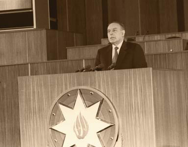 Гейдар Алиев, избранный Президентом Азербайджана на основе большого доверия народа в соответствии с результатами президентских выборов, состоявшихся 3 октября 1993 года, приступил к осуществлению последовательной, целенаправленной работы по обеспечению стабильности, национальной солидарности и развития в стране, для того чтобы Азербайджан занял достойное место на международной арене. 1993-2003 годы – период руководства великого лидера Азербайджаном - вошли в историю как период стабильности и развития. Самое главное - общенациональный лидер заложил прочный фундамент для устойчивого развития, создав в истории нашей государственности эпоху и традиции политической преемственности. В 2003 году в своем обращении к народу наш общенациональный лидер заявил, что верит в Ильхама Алиева. Наш народ в очередной раз поддержал политику Гейдара Алиева, выразил доверие господину Ильхаму Алиеву. И эта вера и доверие оправдали себя. На церемонии инаугурации Ильхам Алиев пообещал азербайджанскому народу процветание, развитие, возрождение, прогресс и победу и выполнил свое обещание, добившись выполнения поставленных задач как во внутренней, так и во внешней политике. Под его руководством Азербайджан за прошедший период достиг многих стратегических целей.