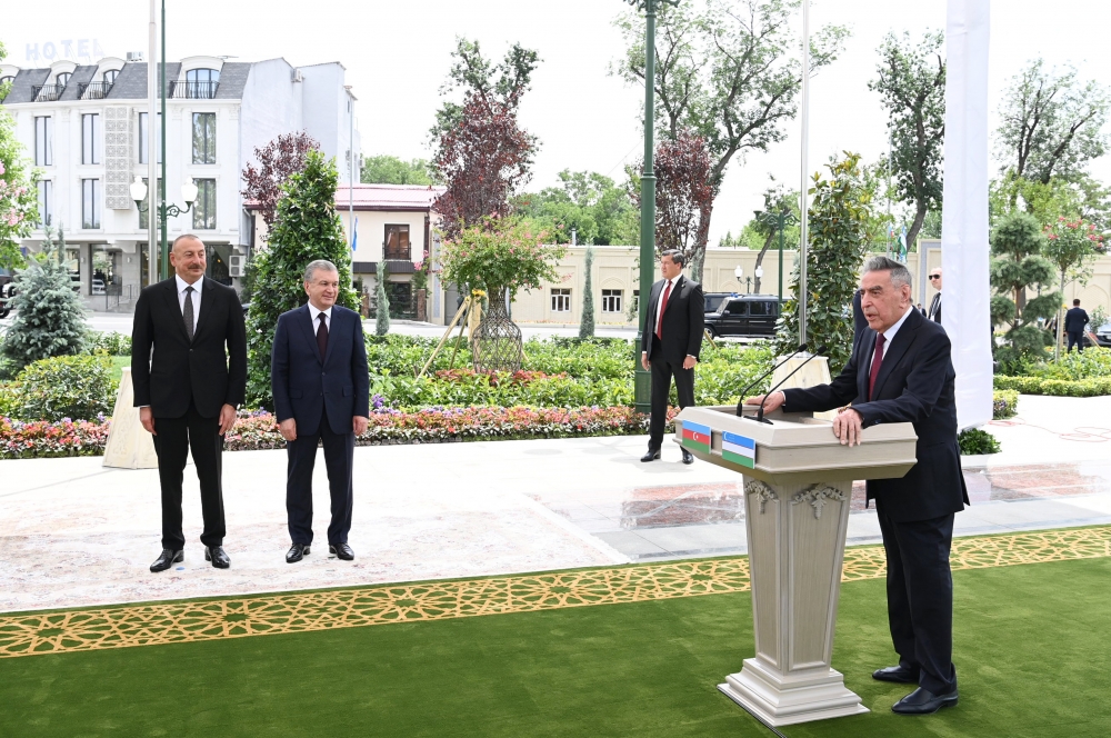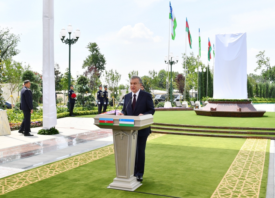 Дорогие друзья, сегодня вспоминая доброе имя общенационального лидера Азербайджана, хочу привести слова великого узбекского поэта Хамида Алимджана: «Человек жив, пока жива память о нем». Убежден, эти слова воспринимаются так и в Узбекистане, и в Азербайджане. Убежден, что этот мемориальный комплекс, посвященный великому человеку и патриоту, созидателю будущего, на которого сегодня равняется молодежь и в Азербайджане, и в Узбекистане, Гейдару Алиевичу Алиеву, станет ярким символом нерушимой дружбы наших стран и народов, почитаемым местом для жителей и гостей нашего родного Узбекистана. Еще раз я хочу выразить искреннюю признательность. К этому визиту мы очень давно готовились. Но были объективные причины, была пандемия. Я хочу сказать, что первый официальный визит после пандемии Ильхам Гейдарович совершает именно в Узбекистан. Это очень символично. Я еще раз хочу сказать: «Добро пожаловать в Узбекистан».