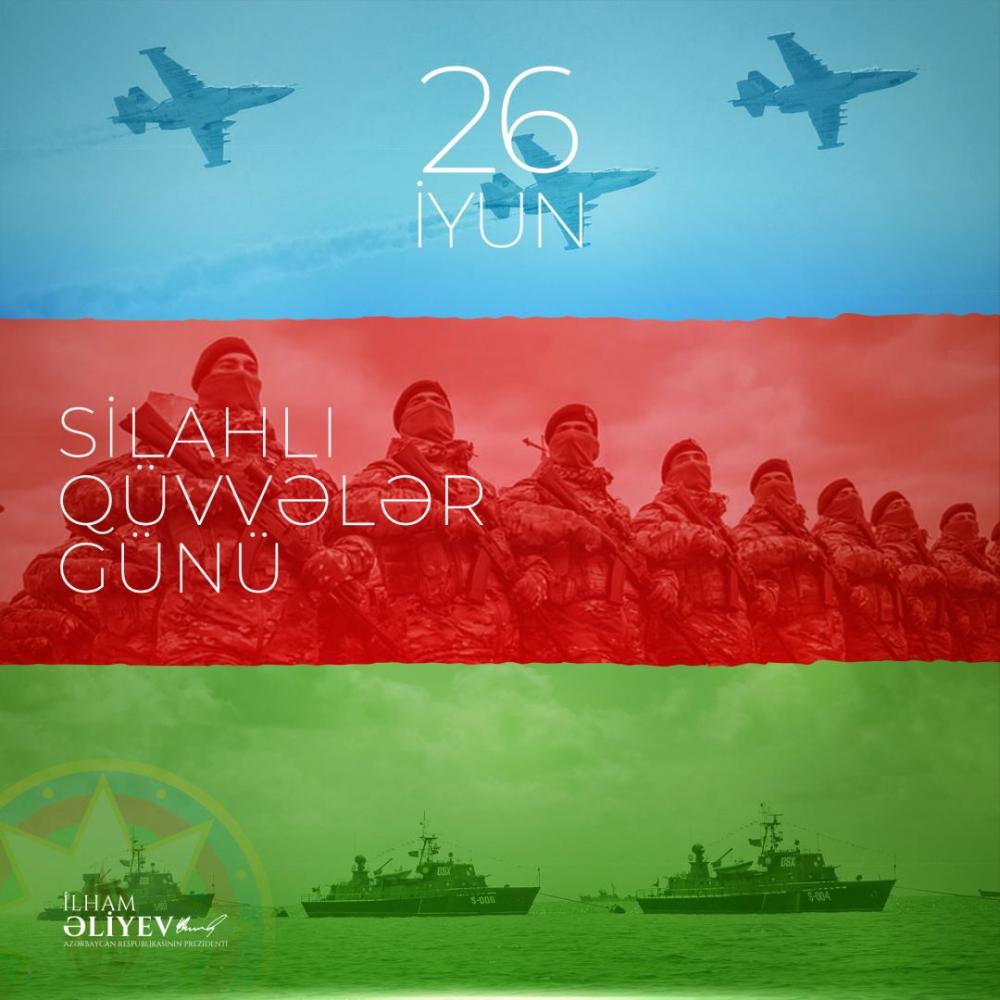 Президент Азербайджанской Республики Ильхам Алиев в своем аккаунте в социальных медиа поделился публикацией по случаю 26 июня - Дня Вооруженных сил.