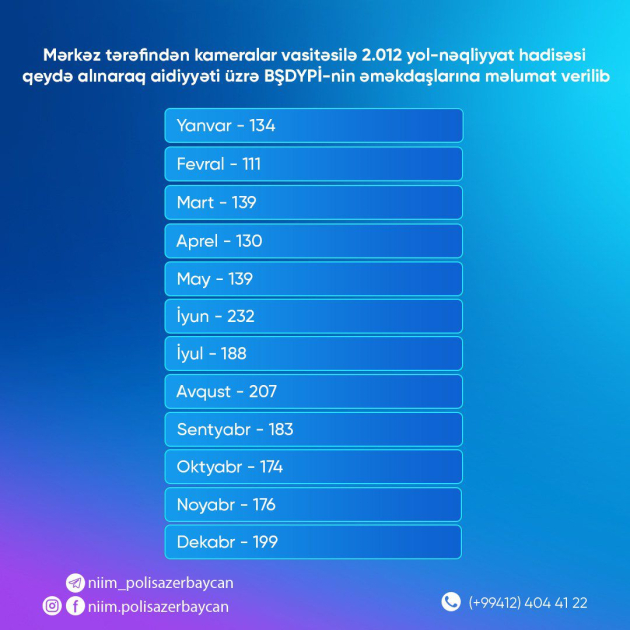 Ötən il NİİM-in kameraları 2 mindən çox yol-nəqliyyat hadisəsini qeydə alıb
