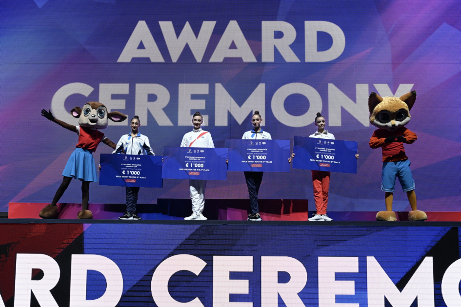 Beş halqada Bolqarıstan birinci, İsrail ikinci, Nəzrin Abdullayeva, Ayan Nəsirova, Nəzrin Salmanlı, İlahə Bahadırova, Şəms Müvəffəqi və Nilufər Orucludan ibarət Azərbaycan millisi üçüncü yeri tutub. Beş gürz proqramında Bolqarıstan bütün rəqiblərini qabaqlayaraq podiumun ən yüksək pilləsinə qalxıb. İtaliya gümüş, Azərbaycan bürünc mükafata yiyələnib.