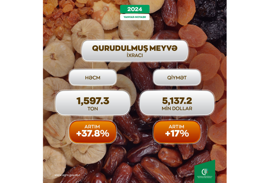 Qurudulmuş meyvə ixracı 37,8 faiz artıb