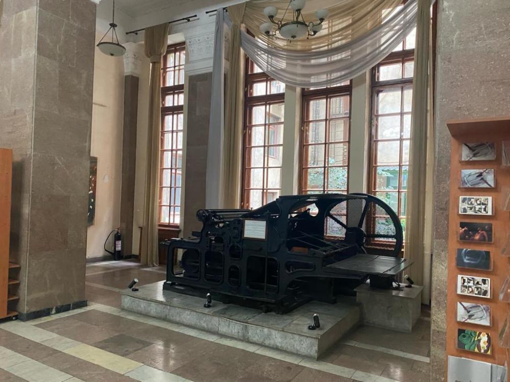 Bu gün yolumuz İstiqlal muzeyinədir. Muzeydə ilk qarşımıza çıxan və diqqətimizi çəkən bir eksponatdan danışmaq istərdik. Söhbət “Universal” tipli mətbəə çap maşınında gedir. Çap maşının olduqca maraqlı tarixçəsi var. 1900-cu illərə birlikdə virtual səfər edək. Deyilənə görə, bu çap maşınını Lenin qubalılara hədiyyə edib. Belə ki, 1920-ci ilin dekabrında Azərbaycanın Quba qəzasının kəndliləri VIII Ümumrusiya Sovetlər Qurultayının ünvanına bir vaqon alma sovqatı göndərir. Sovqatı Quba Qəza İnqilab Komitəsinin sədri Qasım İsmayılov Rusiya Federativ Respublikasının Xalq Komissarları Sovetinin sədri Vladimir İliç Leninə şəxsən çatdırır. Deyilənə görə, Lenin almaların Moskvanın uşaq bağçaları arasında paylanılması üçün göstəriş verir, ikisi də özünün payına düşür. Quba almalarının dadı Leninin xoşuna gəlir. Nəticədə o, Quba kəndlilərinə minnətdarlıq edir və sakinlərə çap maşınını hədiyyə etmək qərarına gəlir.