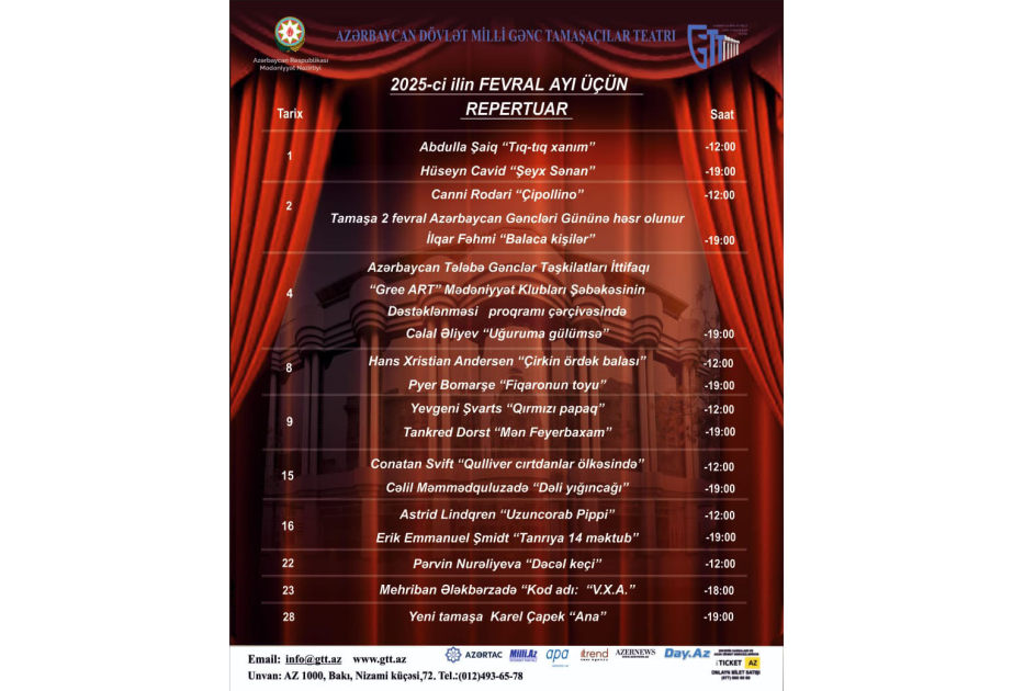 Gənc Tamaşaçılar Teatrının fevral repertuarı açıqlanıb
