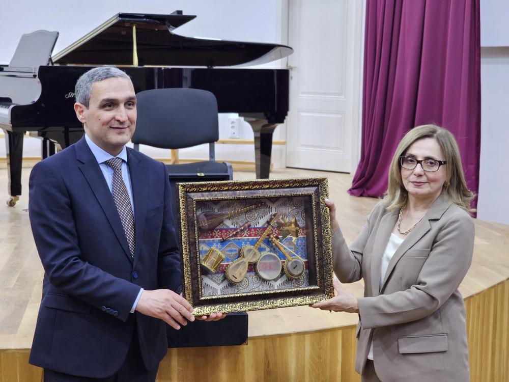 Görüş zamanı iştirakçılar Qarabağ Universitetinin İncəsənət fakültəsini də ziyarət ediblər. Orada yaradılmış rəssam və dizaynerlərin əsərlərindən ibarət sərgi salonunu görüb, yüksək qiymətləndiriblər. Görüşün sonunda Azərbaycan Milli Konservatoriyası tərəfindən Qarabağ Universitetinə xüsusi hədiyyələr və universitetin kitabxanasına dərs vəsaitləri təqdim olunub. Səfərin yekununda isə konsert zalında xüsusi hazırlanmış musiqi proqramı təqdim edilib.