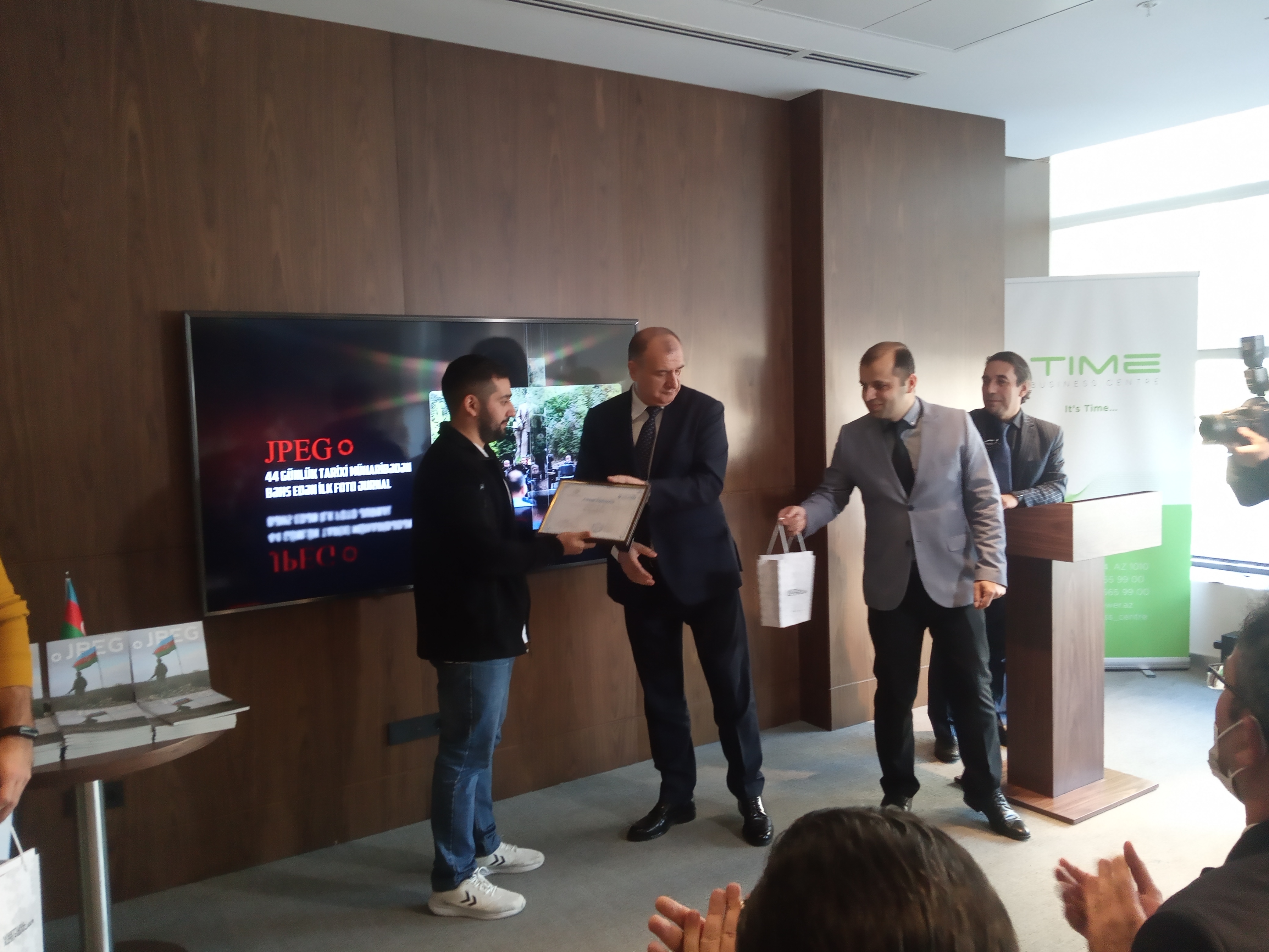 Azərbaycanın 44 günlük Vətən müharibəsinə həsr edilən ilk fotojurnalın təqdimat mərasimi keçirilib. Fotomüxbirlər Əziz Kərimov, Ehtiram Cəbi və Roman İsmayılovun İkinci Vətən müharibəsində lentə aldığı fotolardan ibarət olan jurnal “JPEG” adlanır.