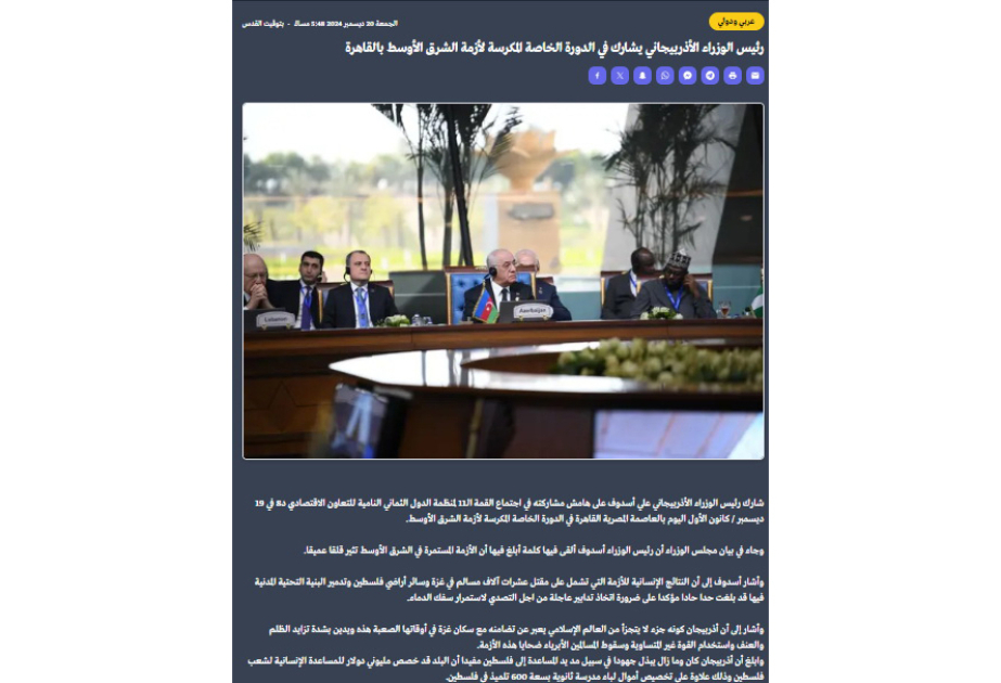 Fələstin mediası Azərbaycanın humanitar yardımından yazıb