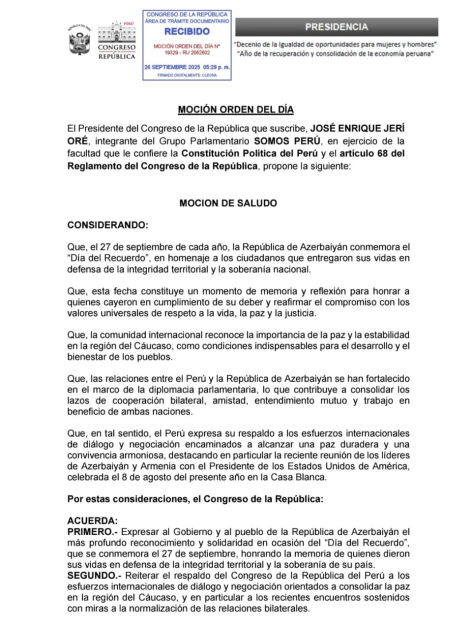 Peru Konqresi Anım Günü ilə bağlı bəyanat qəbul edib