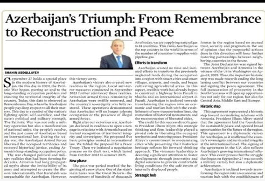 Bakının yeni iqtisadi və siyasi nizamda rolu təsdiqlənir və təqdir olunur
