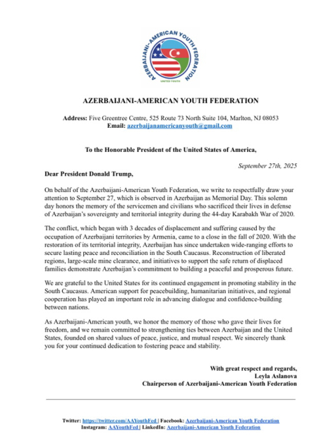 ABŞ rəsmilərinə Anım Günü ilə bağlı məlumatlandırıcı məktublar göndərilib
