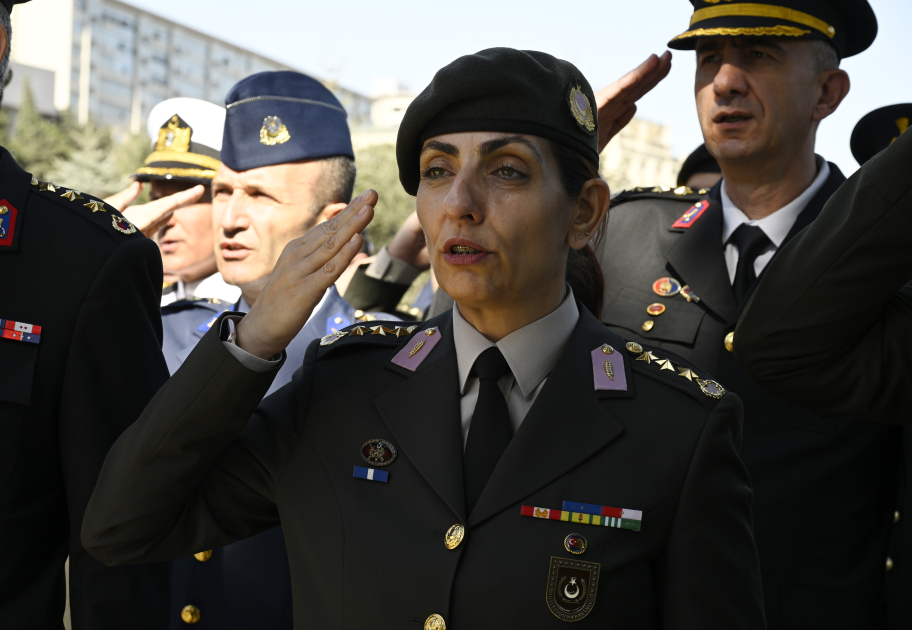 Sonra Müdafiə Nazirliyinin Əlahiddə Nümunəvi Hərbi Orkestrinin ifasında Azərbaycanın və Türkiyənin Dövlət himnləri səsləndirilib.