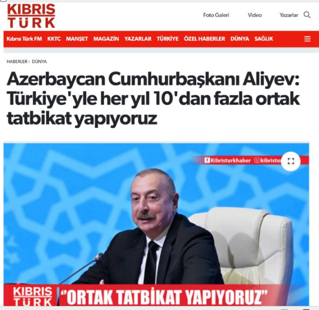 Şimali Kipr Türk Respublikasının “Türk Ajansı Kipr” xəbər agentliyinin və “Kıbrıs Türk” qəzetinin informasiyalarında oxucuların diqqətinə çatdırılır ki, Prezident İlham Əliyev müsahibəsində Azərbaycanın Türkiyə ilə təhlükəsizlik sahəsində müttəfiqlik münasibətlərindən də danışıb. Türkiyə ilə hərbi əlaqələrin müstəqilliyimizin ilk günlərindən davam etdiyini, rəsmi Ankaranın Azərbaycan Ordusunun modernləşdirilməsində və yüksək standartlara çatmasında böyük rol oynadığını vurğulayıb.