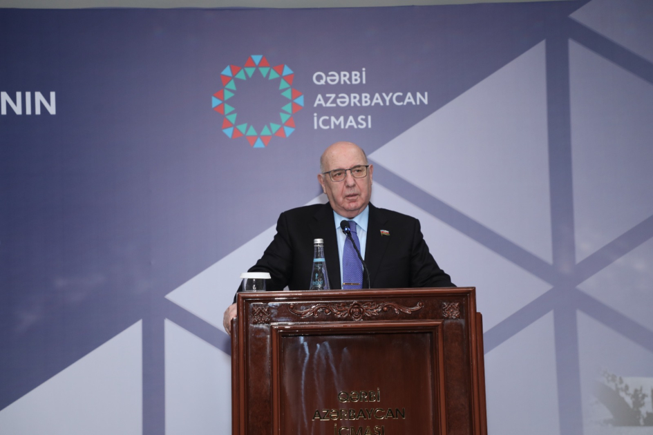 Yığıncaqda açılış nitqi ilə çıxış edən Azərbaycan Respublikası Prezidentinin Administrasiyasının Siyasi partiyalar və qanunvericilik hakimiyyəti ilə əlaqələr şöbəsinin müdiri Ədalət Vəliyev siyasi və hüquqi əsası ilk dəfə Ulu Öndər Heydər Əliyev tərəfindən qoyulan Qərbi Azərbaycan məsələsinin Prezident İlham Əliyevin qətiyyəti nəticəsində dövlət siyasətinin prioritet istiqamətlərindən birinə çevrildiyini qeyd edib. O, 2022-ci il dekabrın 24-də Prezident İlham Əliyevin öz ailəsi hesab etdiyi Qərbi Azərbaycandan olan ziyalılarla görüşünü tarixi hadisə adlandırıb, bu görüşün Qərbi azərbaycanlıların təhlükəsiz və ləyaqətli şəkildə, sülh yolu ilə öz doğma torpaqlarına qayıtmaq inamını daha da möhkəmləndirdiyini bildirib.