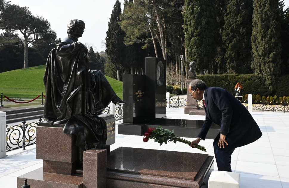 Ölkəmizdə rəsmi səfərdə olan Somali Federativ Respublikasının Prezidenti Hasan Şeyx Mahmud fevralın 12-də Fəxri xiyabanda xalqımızın Ümummilli Lideri, müasir müstəqil Azərbaycan dövlətinin memarı və qurucusu Heydər Əliyevin xatirəsini ehtiramla yad edib, məzarı önünə əklil qoyub.