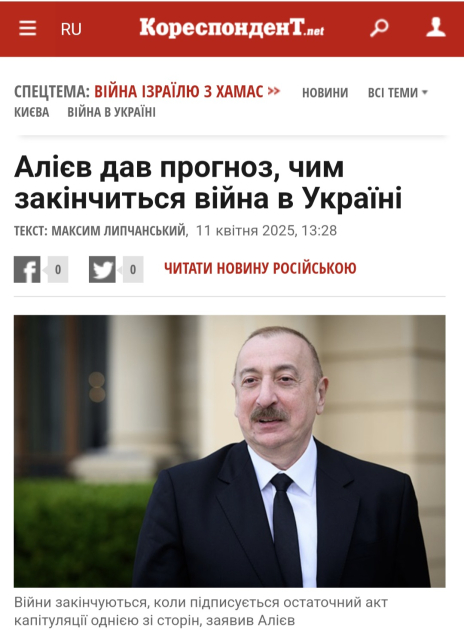 / / Ukrayna mediası Prezident İlham Əliyevin müharibənin tənzimlənməsinə dair fikirlərinə geniş yer ayırıb