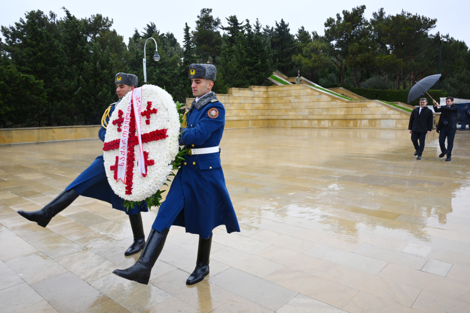 AZƏRTAC xəbər verir ki, Mixeil Kavelaşvili Azərbaycanın müstəqilliyi və ərazi bütövlüyü uğrunda mübarizədə canlarından keçmiş qəhrəman Vətən övladlarının xatirəsini ehtiramla yad edib, “Əbədi məşəl” abidəsinin önünə əklil qoyub.
