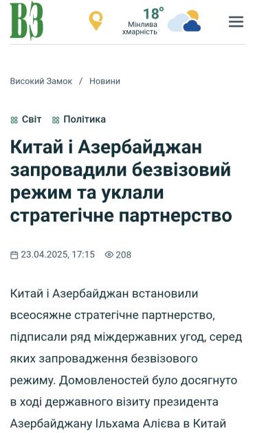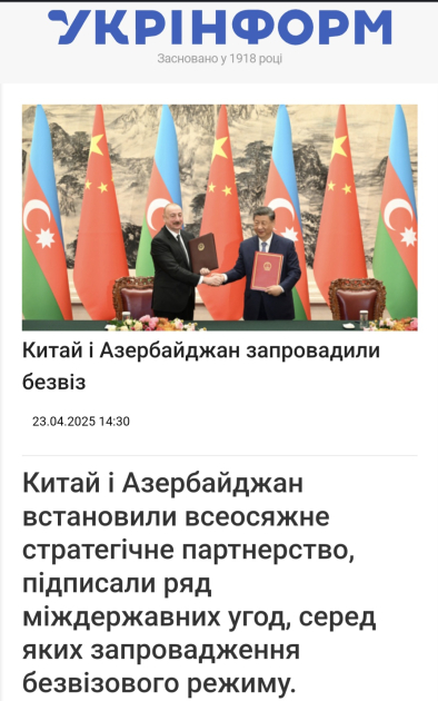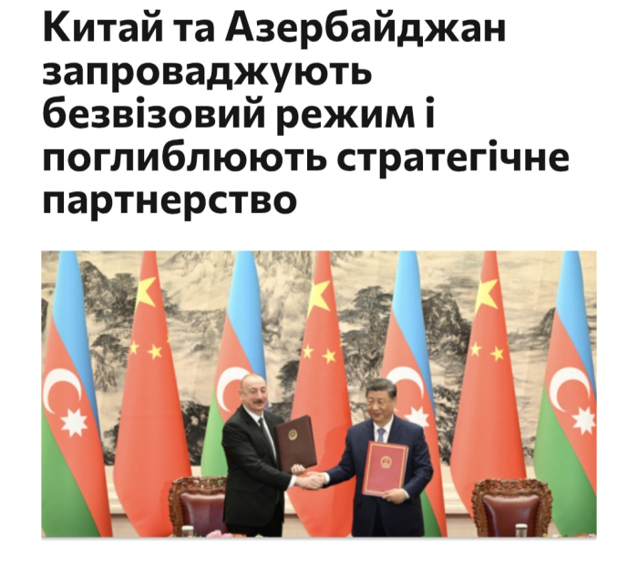 AZƏRTAC xəbər verir ki, “Ukrinform” dövlət informasiya agentliyində, “UA.News”, “Ukr.net”, “Mi Ukraine” “Visokiy Zamok” və digər xəbər portallarında dərc edilən yazılarda Azərbaycan və Çin arasında strateji münasibətlərdən bəhs edilib.