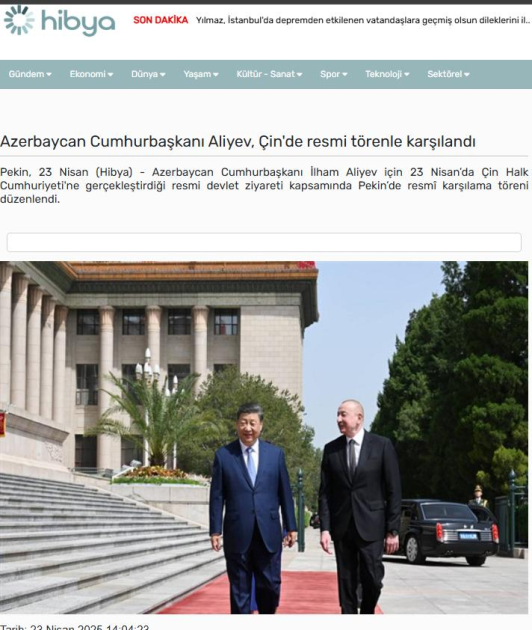 Qardaş ölkə Türkiyənin “Anadolu” agentliyinin “Azərbaycan və Çin arasında hərtərəfli strateji tərəfdaşlıq bəyanatı qəbul edilib” başlıqlı xəbərində dövlətimizin başçısının Çindəki təmasları çərçivəsində iki ölkə arasında hərtərəfli strateji tərəfdaşlıq əlaqələrinin qurulmasına dair Birgə Bəyanat və bir sıra sazişlər, o cümlədən vizadan azadolma sənədinin imzalandığı qeyd olunub. DHA-nın “Çin lideri ilə Azərbaycan Prezidentindən strateji tərəfdaşlıq mesajı” adlı xəbərdə Si Cinpinin “Pekin Bakı ilə qarşılıqlı hörmət və ədalətə əsaslanan əməkdaşlıqda maraqlıdır” fikri vurğulanıb. “CNN Türk” telekanalının Azərbaycan Prezidenti İlham Əliyev Çin Xalq Respublikasının Sədri Si Cinpinin dəvəti ilə Çinə səfəri ilə bağlı xəbərində Si Cinpinin “Çin Azərbaycan ilə münasibətlərə strateji və uzunmüddətli perspektivdən baxır və inkişaf etdirir” fikri vurğulanıb, Pekinin Bakı ilə hərtərəfli əməkdaşlıqda yeni səhifə açmağa hazır olması faktı qabardılıb.