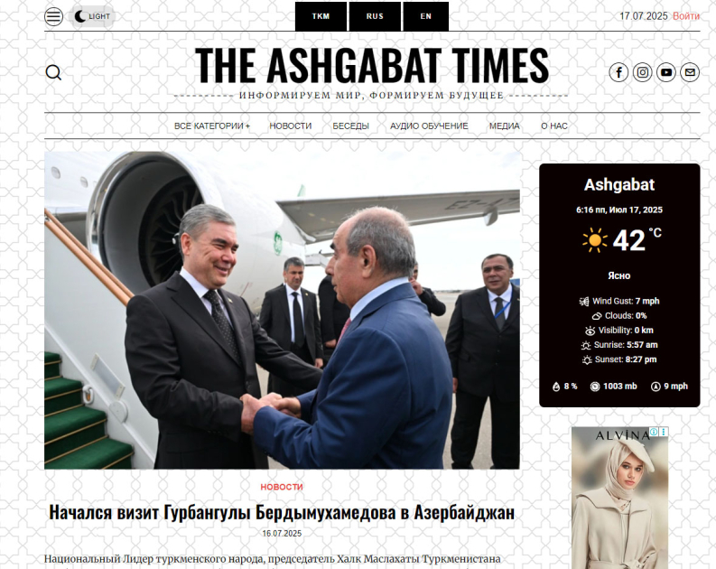 Türkmənistan mətbuatı Qurbanqulu Berdiməhəmmədovun Azərbaycana səfərini geniş işıqlandırıb