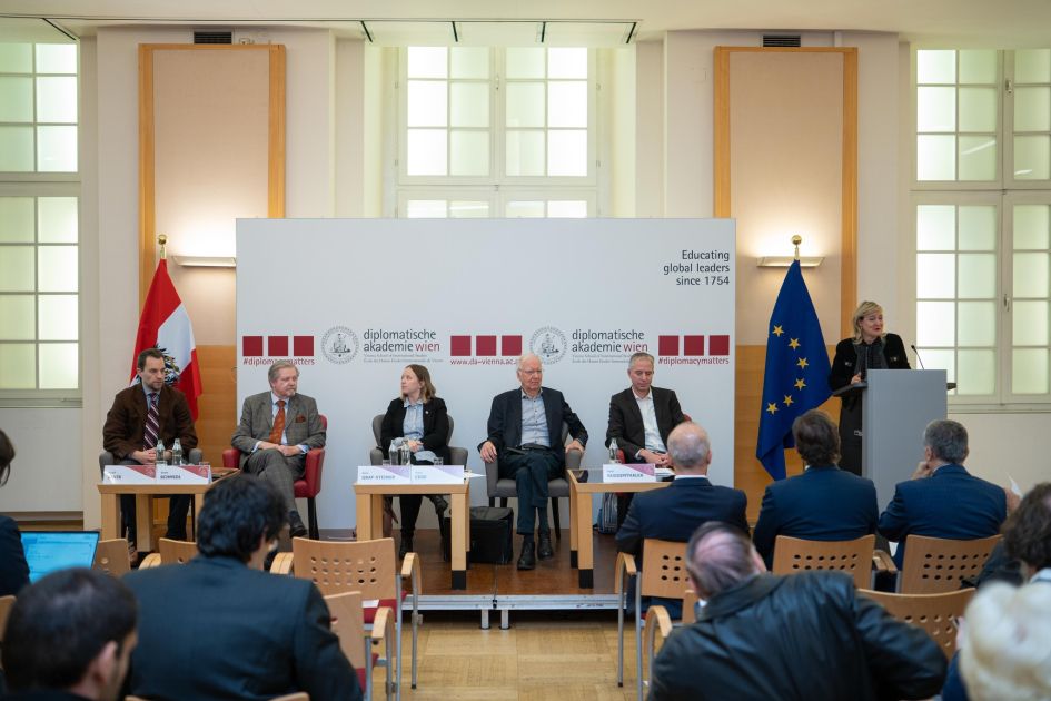 Vyana Diplomatiya Akademiyasının direktor müavini Martina Şubert və Azərbaycanın Avstriyadakı səfiri Rövşən Sadıqbəyli konfransa açılış nitqi ilə çıxış ediblər. R. Sadıqbəyli bildirib ki, hazırda Avropada və dünyada müşahidə olunan təhlükəsizlik böhranı - beynəlxalq hüququn əsas prinsiplərinin pozulması, etimadın və inamın aşınması, siyasi-hərbi bloklar arasında dərinləşən uçurumlar, eləcə də qlobal dinamikaların və ittifaqların dəyişməsi dünyanın gələcək təhlükəsizlik və sabitlik mənzərəsinə dair qeyri-müəyyənliyi artırır. Bu dəyişkən təhlükəsizlik mühiti, həmçinin neytral və bloklara qoşulmayan dövlətlər üçün çətinliklər yaradır. Çünki onlar təhlükəsizliklərini siyasi-hərbi bloklara üzvlük vasitəsilə təmin edə bilmirlər və bu bloklardan təhlükəsizlik zəmanətlərinə ehtiyac duyurlar.