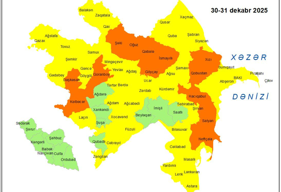 Küləkli hava şəraiti ilə bağlı sarı və narıncı xəbərdarlıq verilib