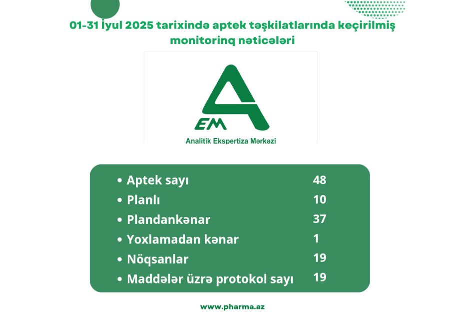 On doqquz aptekdə nöqsanlar aşkarlanıb