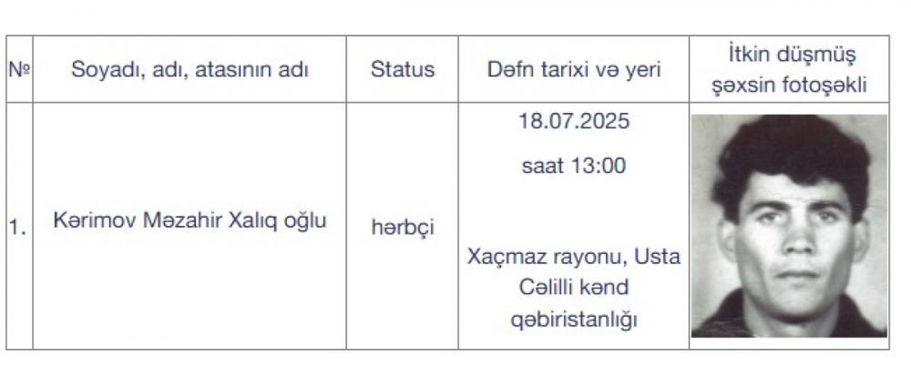 Daha bir itkin-şəhidin dəfn mərasimi olacaq