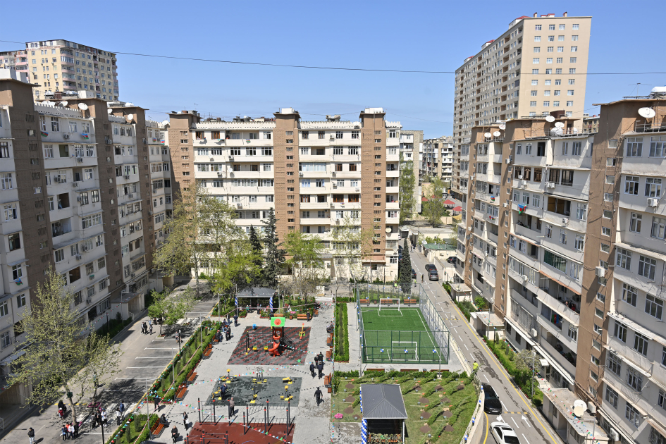 “Bizim həyət” layihəsi çərçivəsində abadlaşdırılmış digər ərazilərdə olduğu kimi yenidən qurulmuş növbəti həyətdə də sağlamlıq imkanları məhdud insanların rahat hərəkəti nəzərə alınıb, bütün yaş qrupları üzrə uşaqların inkişafı üçün əlverişli şəraitin yaradılması, gənclərin asudə vaxtlarının səmərəli təşkili və onlarda idmana marağın artırılması məqsədilə ərazidə süni örtüklü futbol stadionu, şahmat meydançası, müxtəlif idman qurğuları, uşaqlar üçün oyun sahəsi salınıb. Eyni zamanda, həyətyanı sahədə söhbətgahlar, çoxsaylı oturacaqlar, quş yuvaları və pişik evləri quraşdırılıb. Həyətdə yeni işıqlandırma dirəkləri, müşahidə kameraları quraşdırılıb, binaların fasad və blokları tam təmir olunub, asfalt və dam örtüyü, elektrik xətləri yenilənib.