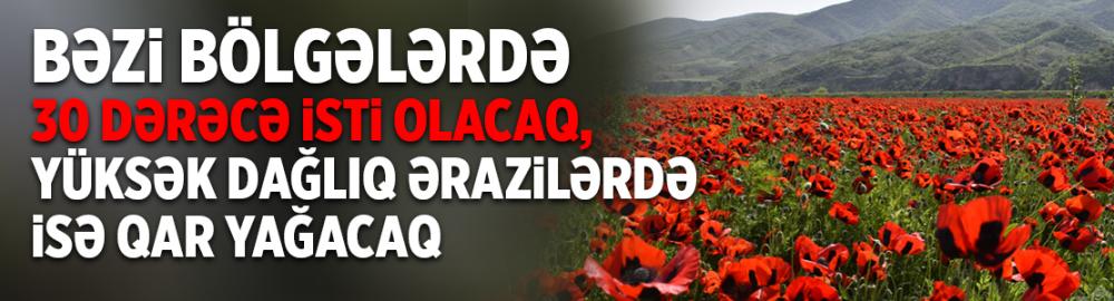 Bəzi bölgələrdə 30 dərəcə isti olacaq, yüksək dağlıq ərazilərdə isə qar yağacaq