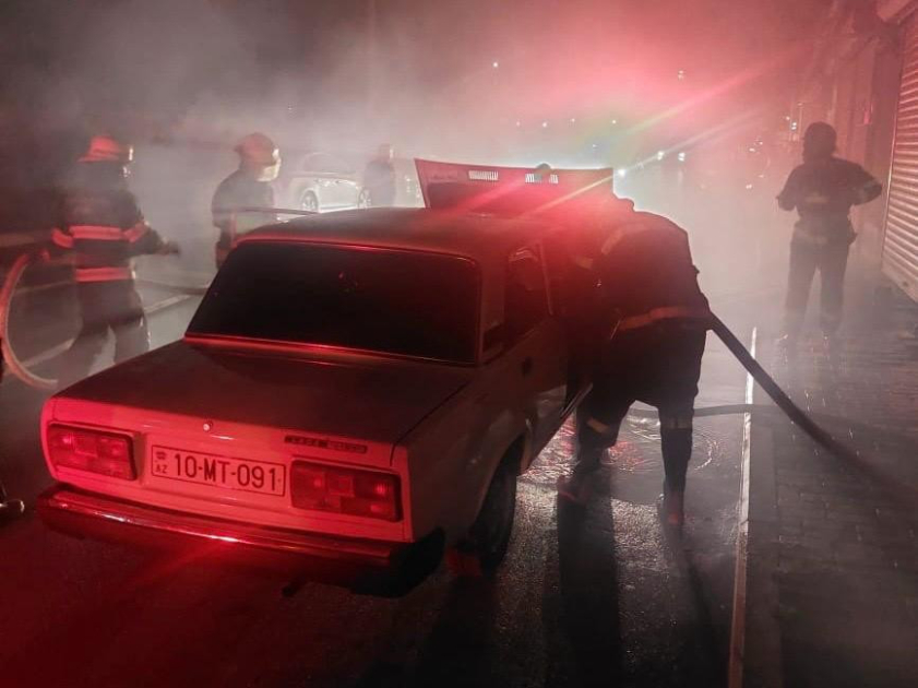 Şəmkir şəhərində minik avtomobilində yanğın baş verib.