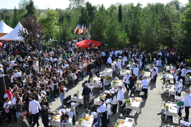 Sonra qonaqlar qurulan pavilyonlarda müxtəlif mədəniyyətlərin mətbəxi ilə tanış olub, fərqli təamları dadıblar.