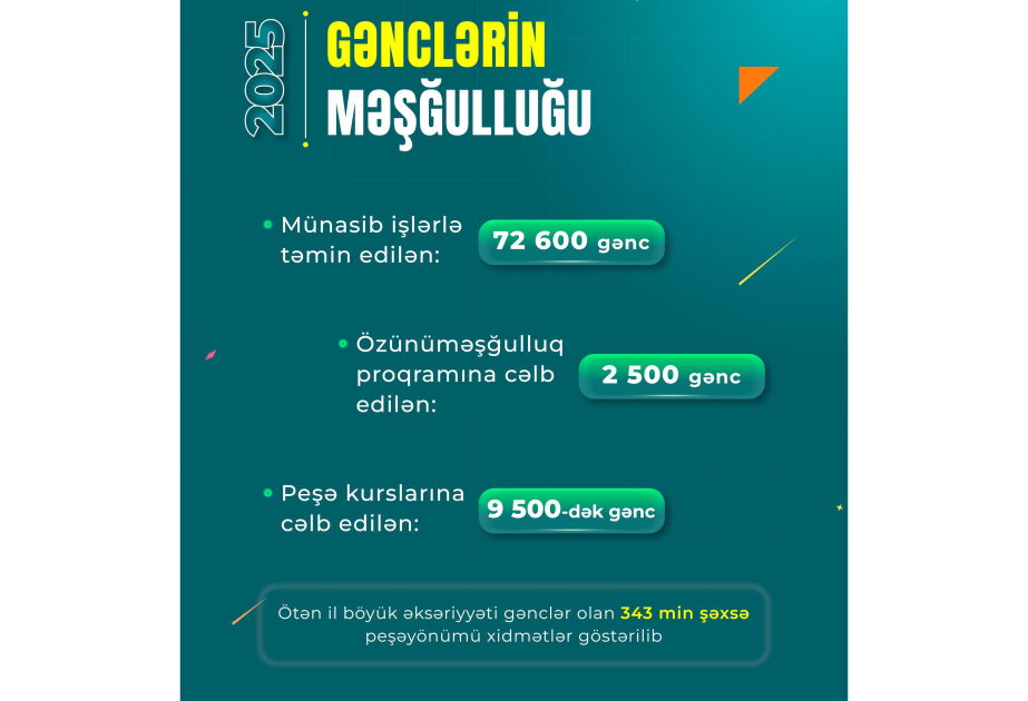 Ötən il 72 min 600 gənc işlə təmin edilib, 2500 gənc üçün kiçik bizneslər qurulub