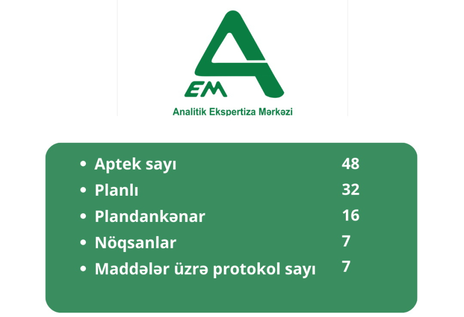 Mərkəzdən AZƏRTAC-a verilən məlumata görə, həmin yoxlamalardan 10-u Bakıda, 38-i isə respublikanın digər şəhər və rayonlarındakı apteklərdə aparılıb.