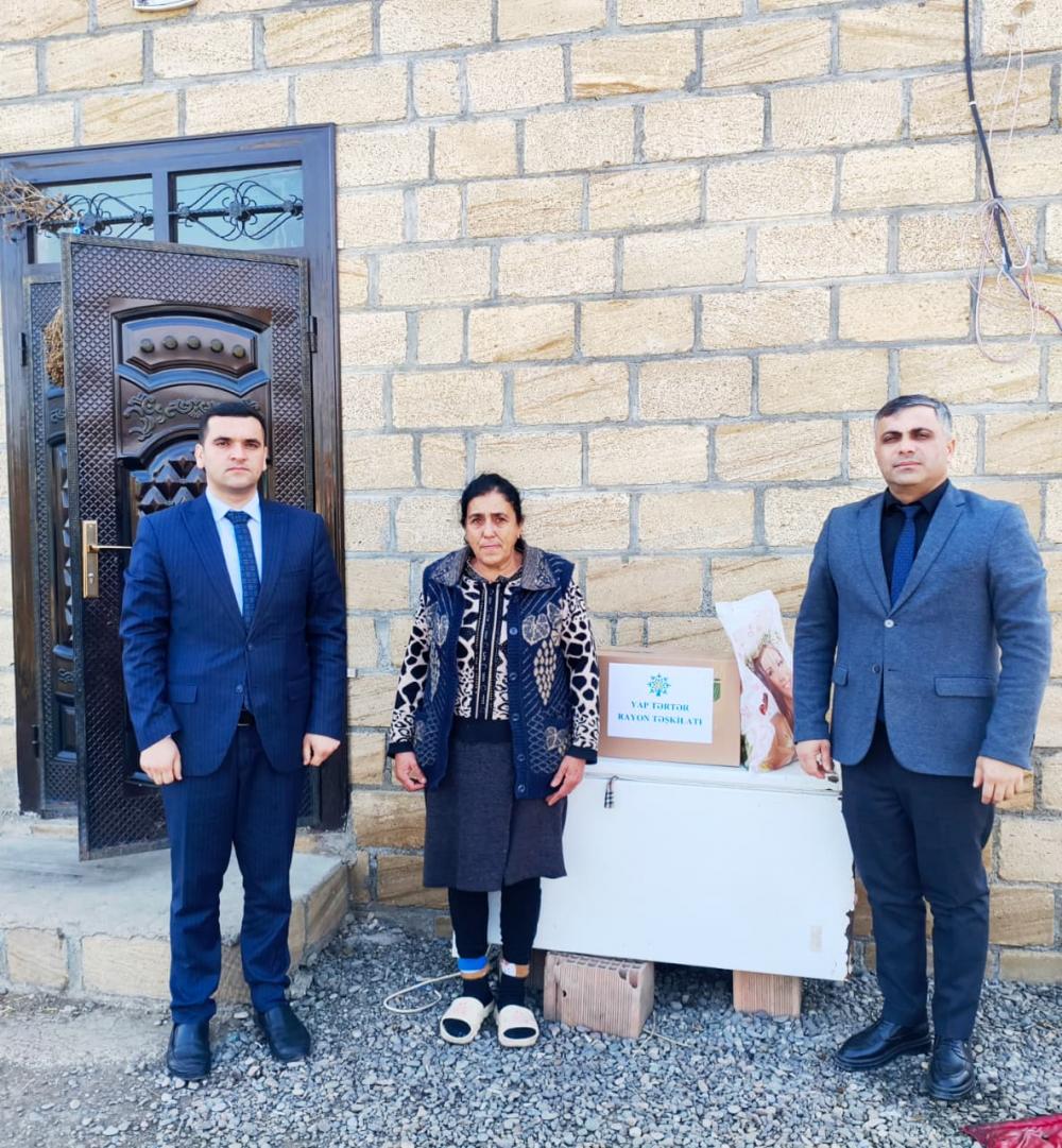 “Konstitusiya və Suverenlik İli” ilə əlaqədar YAP Tərtər rayon təşkilatının Tədbirlər Planına uyğun olaraq, təşkilatın sədri Eldar Əsədov və əməkdaşlar Azərbaycan Respublikasının ərazi bütövlüyü uğrunda şəhid olmuş bir qrup şəhid ailəsini, eləcə də Vətən müharibəsində sağlamlığını itirmiş qaziləri ziyarət etmişlər. Görüş zamanı ailələrin qayğıları ilə maraqlanılmış, onların müraciətləri dinlənilmiş və 3 Dekabr – Beynəlxalq Əlillər Günü münasibətilə onlara ərzaq sovqatı təqdim edilmişdir.