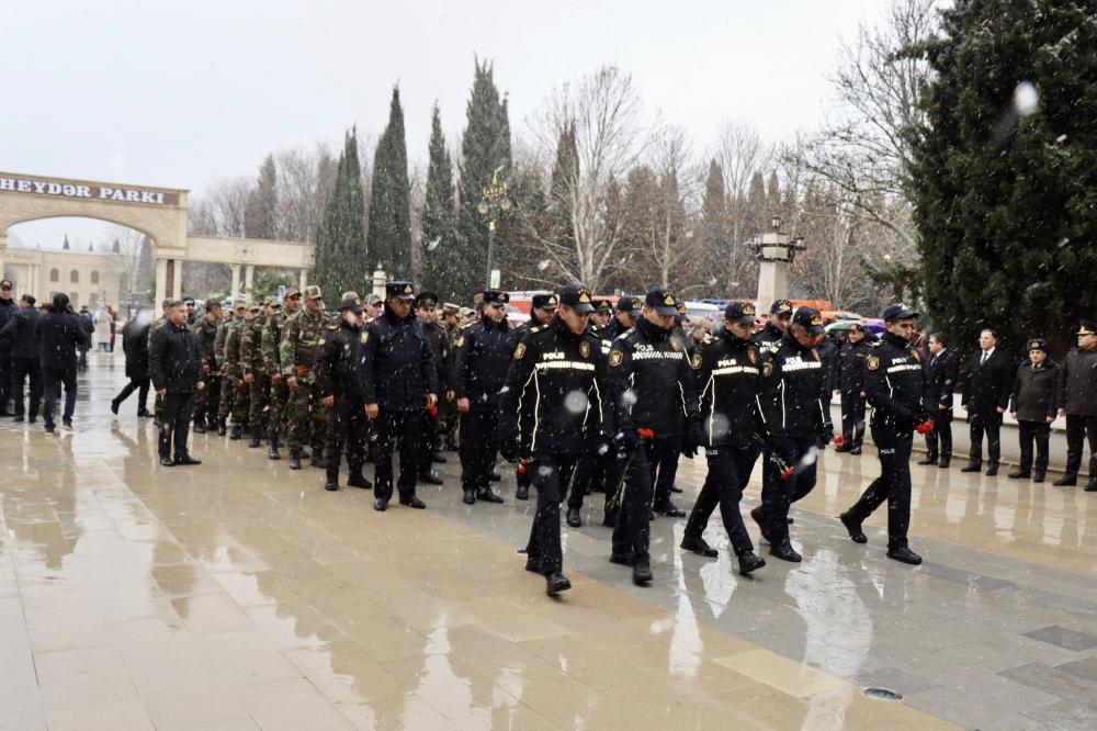 Mərasim iştirakçıları Vətənin azadlığı və ölkəmizin müstəqilliyi uğrunda canlarını fəda etmiş şəhidlərin əziz xatirəsini dərin ehtiramla yad edərək kompleksin önünə tər qərənfillər qoyublar.